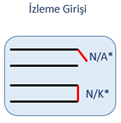 Giriş Çıkış modüllerin giriş ( izleme ) kısmı, harici kuru kontak (gerilimsiz) röle konumunu izlemek için kullanılır. Normalde açık olan kontak konumunun değişmesi halinde santral bunu algılar, yapılan bu algılamanın olay türü sistemde farklı amaçlar için kullanılabilir.